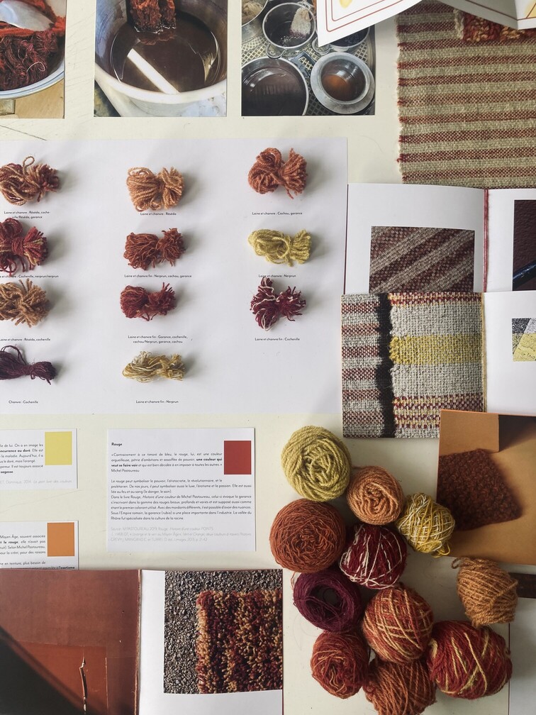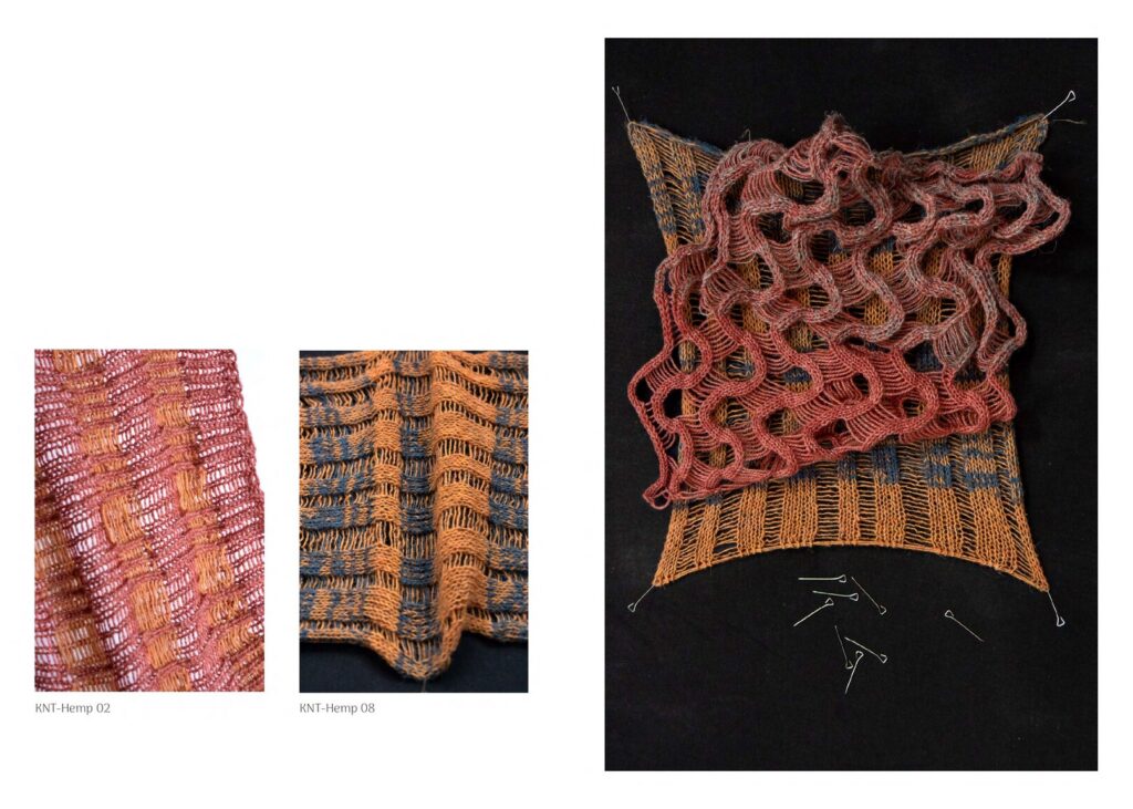 Dans un premier temps, une phase d’exploration expérimentale et matérielle a permis d’interroger les propriétés du chanvre et les valeurs de l’ennoblissement à travers des traitements naturels. Cette recherche a ensuite donné lieu à un travail de set design, prolongé par une production éditoriale. Les éditions imprimées restituent ces explorations sous forme de récits prospectifs, attentifs aux spécificités territoriales, aux ressources locales, ainsi qu’aux imaginaires contemporains autours d’une matière ancestrale.